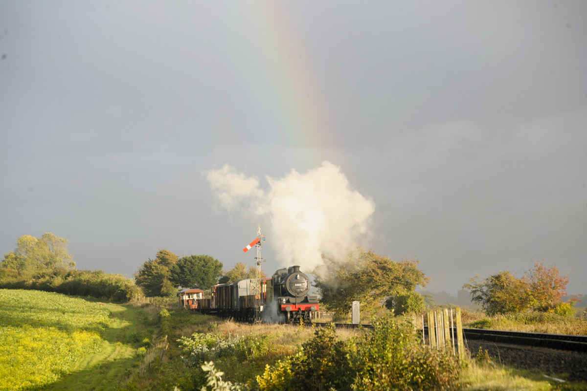 Leaves have been falling and the rails are damp… it’s certainly starting to look autumnal as the Trust’s S&D 7F No. 53808 heads away from Alton on Sunday 25 October.