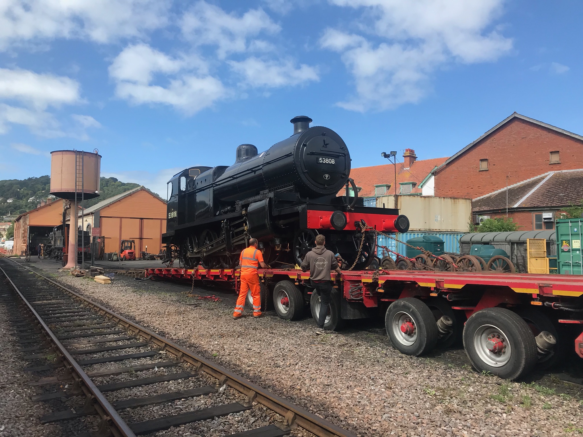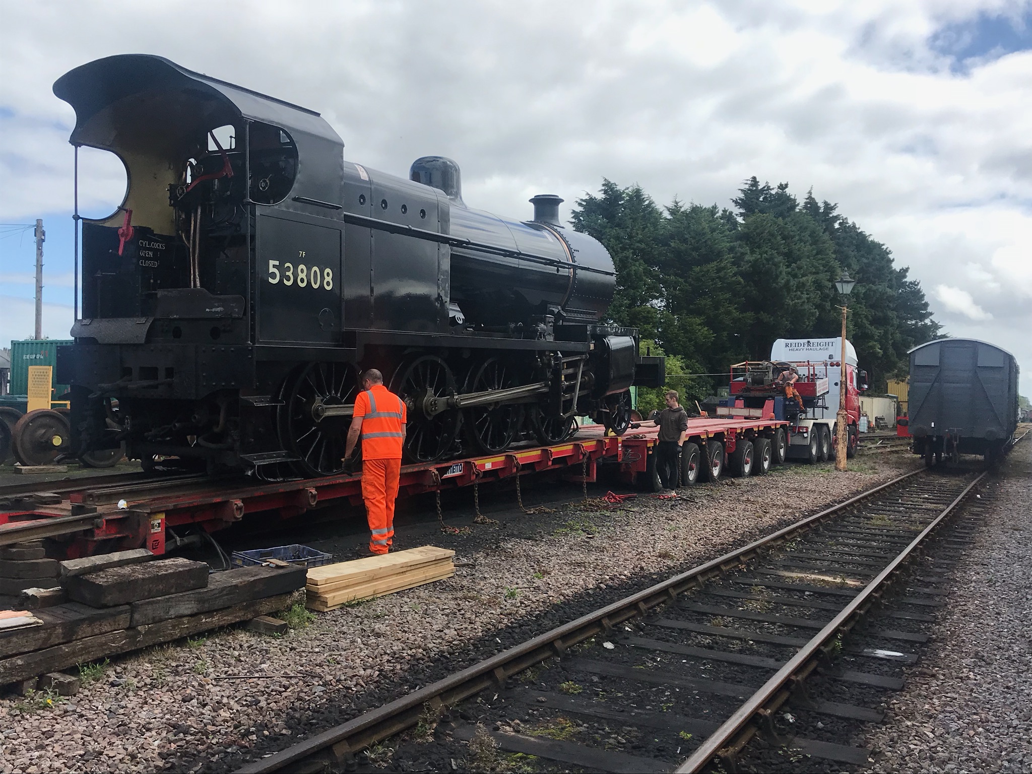 The Trust's restored S&D 7F No. 53808 – plus tender – left Minehead today on two low-loaders.