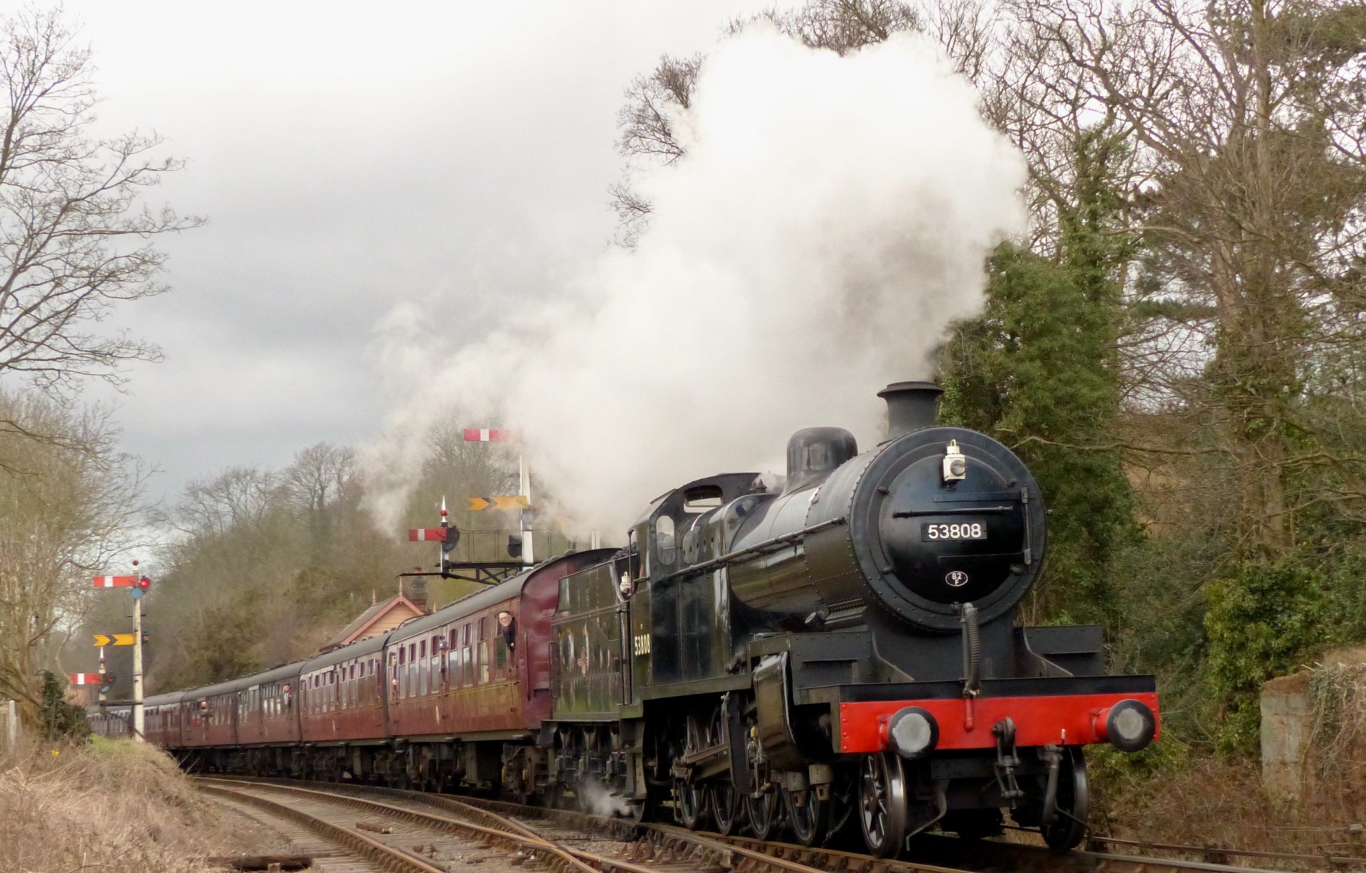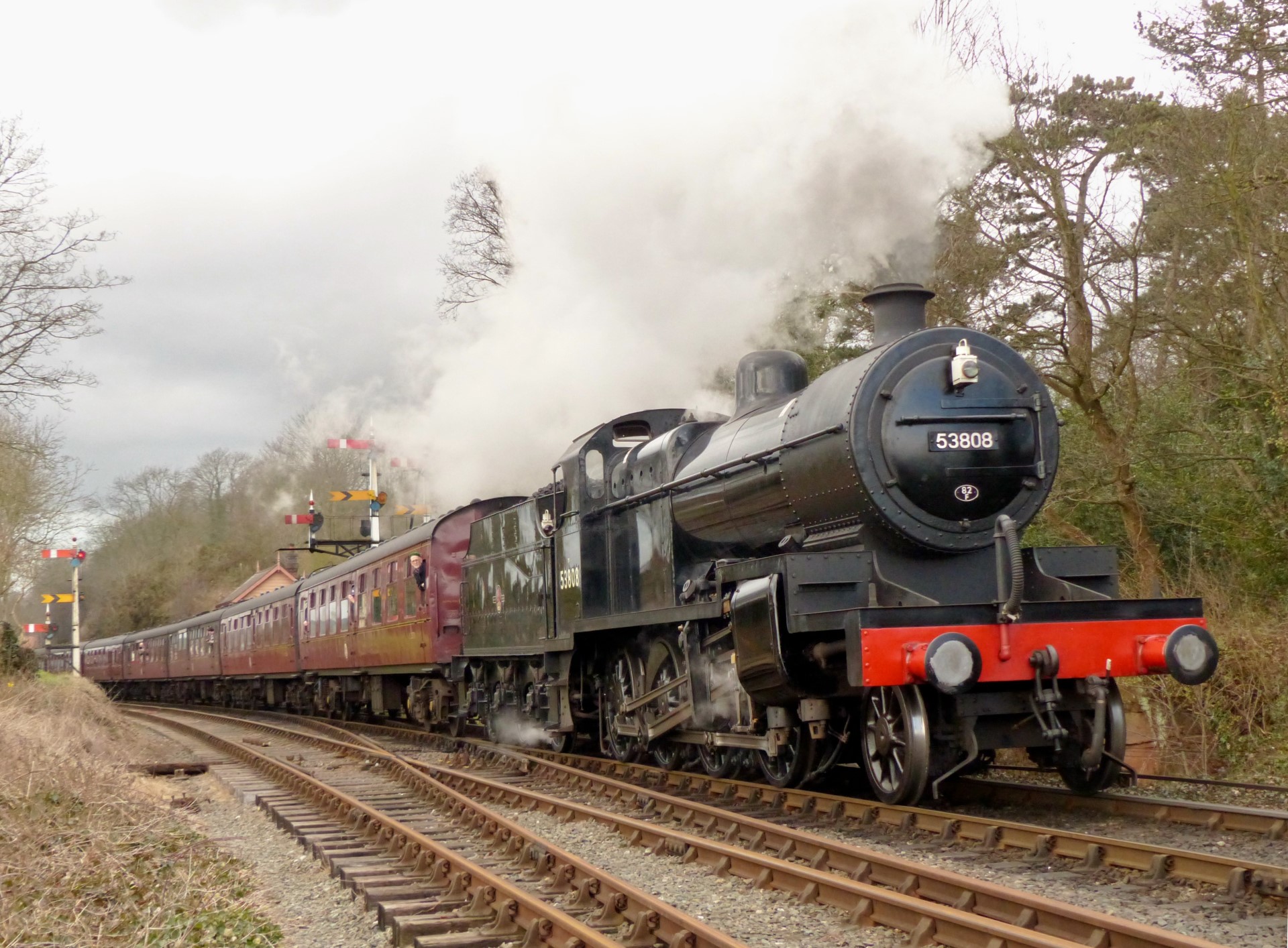 53808 arrived at Kidderminster at 11.30 am on Thursday 15th March, the day before the gala started. After a quick checkover, the 7F was towed to Bridgnorth where steam was raised sufficient to haul the second train of the B1's diagram on the Friday.