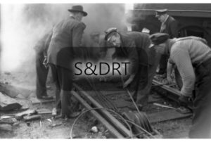Broadstone; Re-railing No. 73049 after incident, 17-10-62 (3); G A Richardson