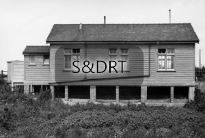 Shapwick station showing rear of wooden building from south, inc. east gable end, 1960