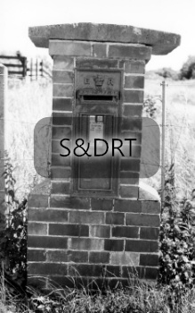 Shapwick station; Post Office postbox marked ‘E VII R’ in brick pillar, 1960