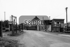 Bason Bridge station looking east with the level crossing and creamery beyond. Photo believed to have been taken at the same time as WSHSD_2015_41_227/228, therefore Summer 1960.