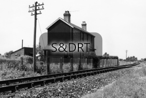 Bason Bridge station looking west showing the side detail of the ground frame cabin. Station Master’s house visible in the left distance. Note fire buckets. Photo probably taken at the same time as WSHSD_2015_41_228, therefore during Summer 1960.