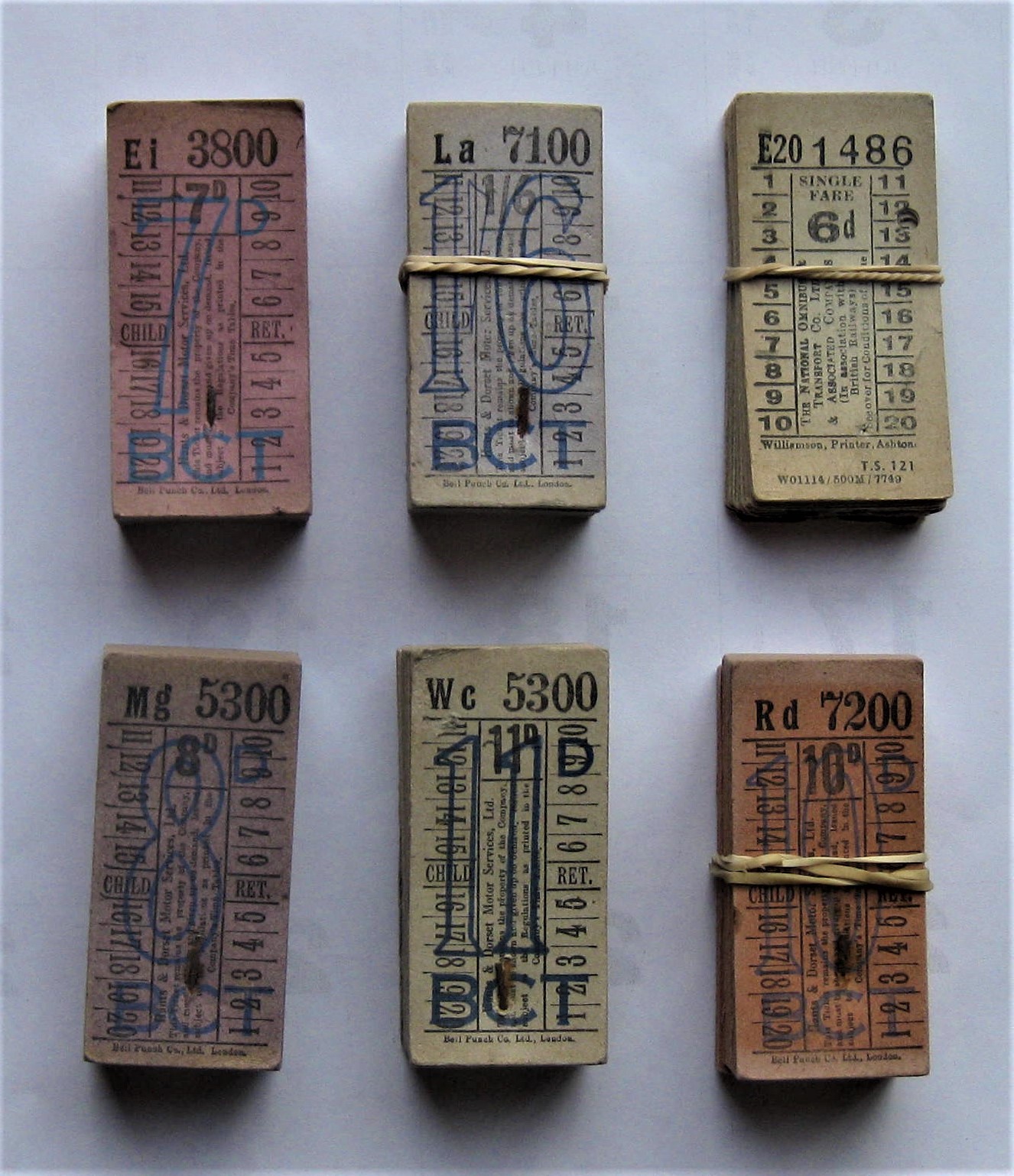 5 packs of 100 tickets for 7d, 1/6d, 8d, 11d & 10d