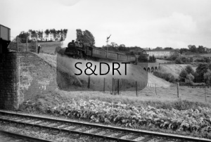 Fowler S&D 7F No. 53808 (built 1925 as S&D No. 88) is pictured on a Down passenger service of seven carriages just about to cross over the Great Western main line at Cole. The locomotive carries what appears to be a reporting code including the numbers 087.