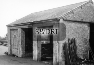 The Goods Shed at Evercreech New seen from the north-east, station and loading gauge just visible beyond. Probably taken in the 1960s, however, note that the signalbox and sidings closed in 1964.