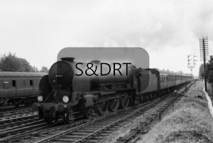 Ex-SR ‘Lord Nelson’ LN class 4-6-0 locomotive No. 30862 ‘Lord Collingwood’ (with 71A Eastleigh shedplate) on the 11.16am Bournemouth West to Newcastle passenger service with SR headcode no. 17 (Bournemouth Central & Weymouth, train reporting no. 268). Saturday 22 July 1961.