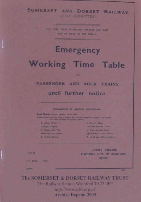 Reprint of the Somerset & Dorset Railway Emergency Working Timetable 1936. Contains two sections titled:-