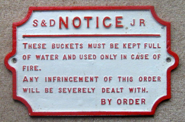 Home / Memorabilia / S&DJR Metal Fire Bucket Sign – Replica