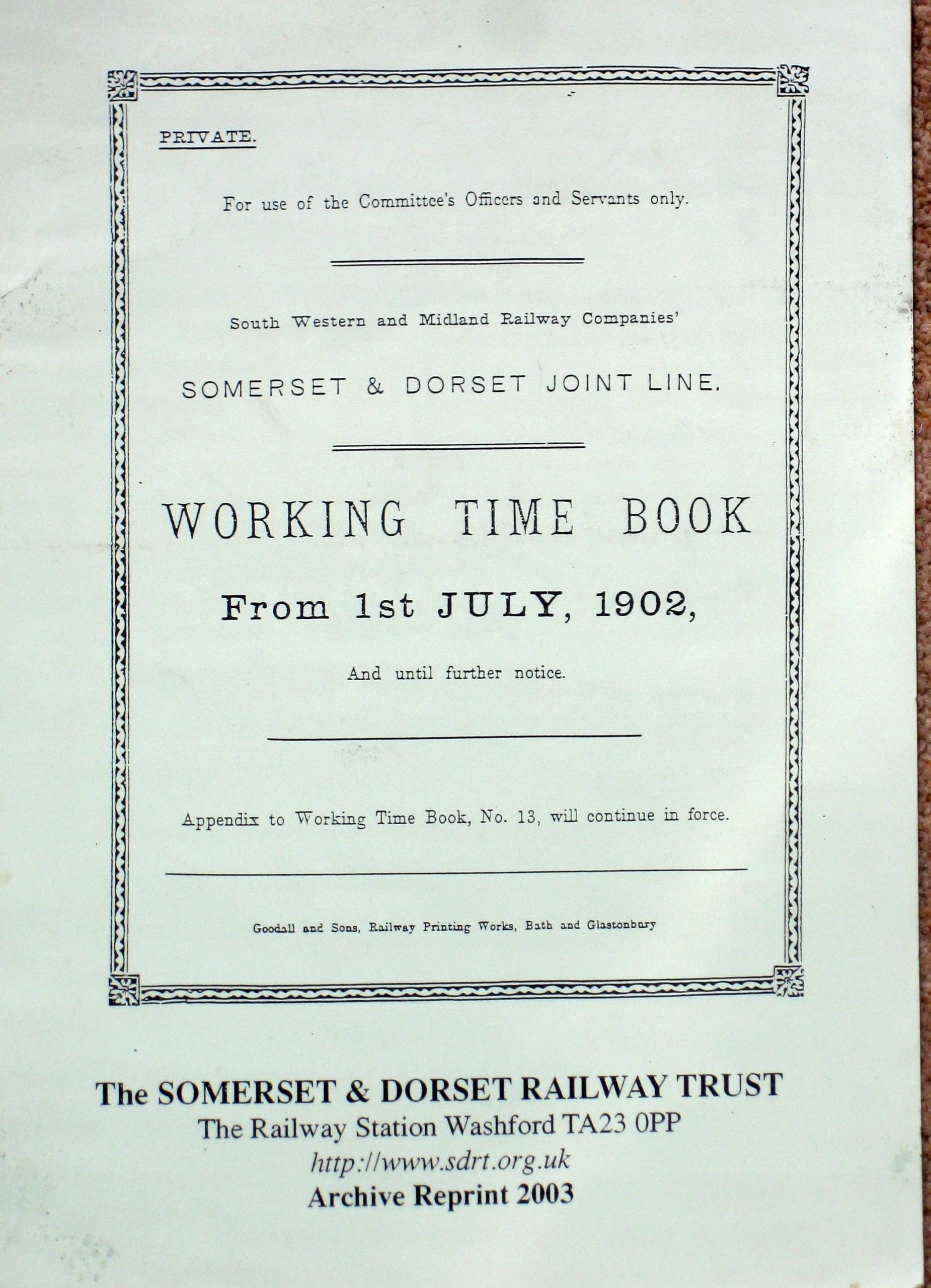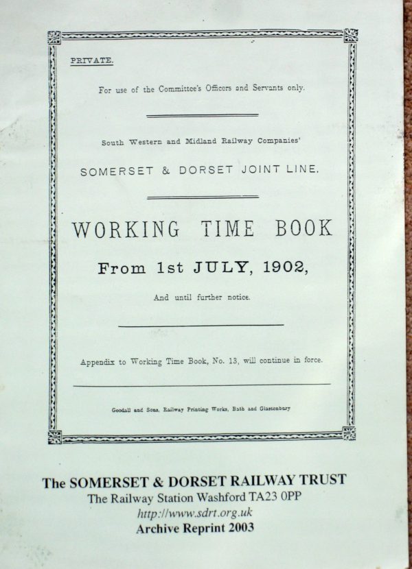 Reprint of the Somerset & Dorset Railway Working Timetable from 1st July 1902 until further notice