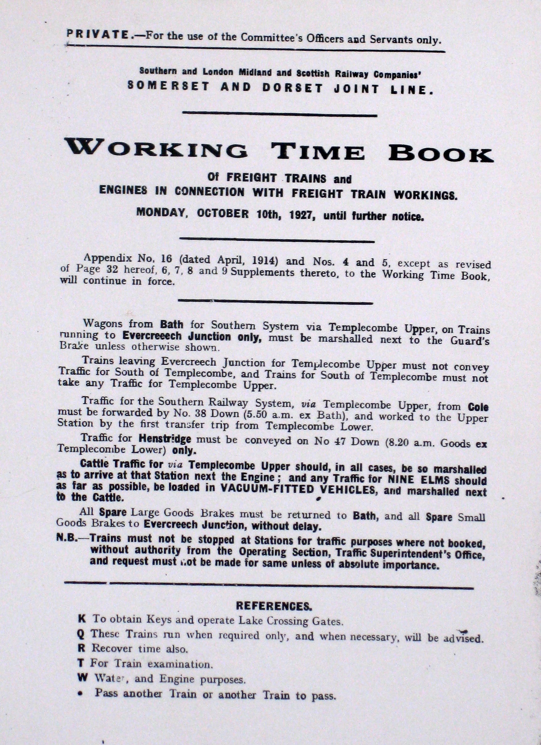 Reprint of the Somerset & Dorset Railway Working Timetable of Freight Trains from October 10th 1927 until further notice