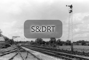 Looking north-north-west at Shillingstone (platforms behind) with loading gauge, headshunt and Up starting signal – on Down side of track. Sturminster Newton end of passing loop, Down Siding West and Down Home signal in the middle distance. In the high res. version of the image, Lamb House Bridge can be seen in the distance.