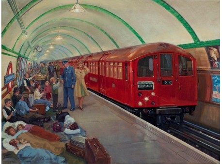 Wartime on the Underground. London’s first underground line opened in 1863 connecting Paddington and Kings Cross to a new terminus nearer the heart of the City at Faringdon. The deep level tube system, built between 1890 and 1907 offered a refuge from the air raids during both World Wars. In 1941 a train of 1938 stock arrives at Trafalgar Square on the Bakerloo line as exhausted Londoners shelter for the night.