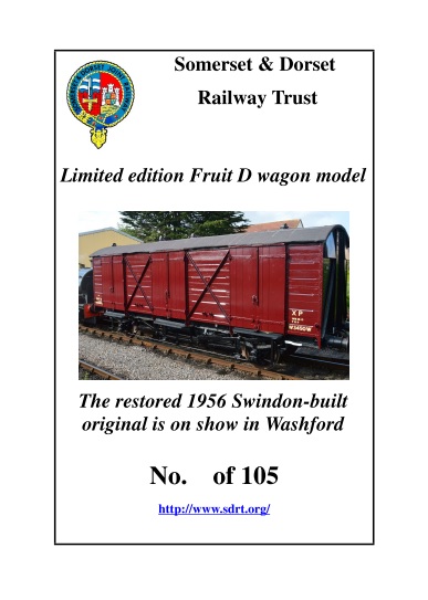 The Trust has now in stock a limited edition 00-gauge model of its own BR 'Fruit D' van which can be seen at our museum in Washford. Our van was built in the mid-1950s to a GWR design.